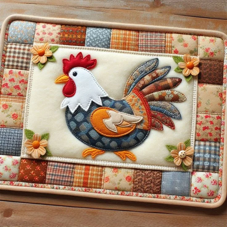 Applique is the defining feature of the Chicken Salad quilt pattern, adding character and charm to the final design.